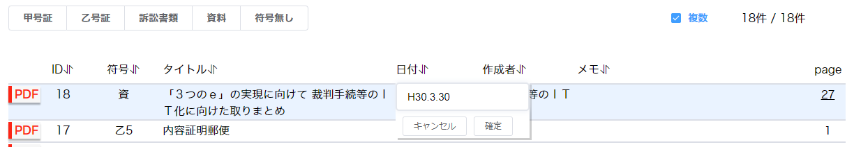 弁護革命に登録した文書の書誌情報は自由に編集することができます。